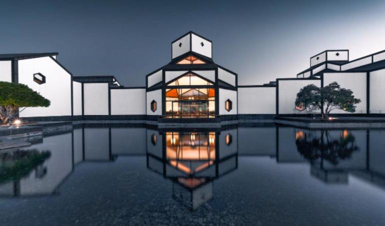 “粉墙为纸,石竹为绘,光影为景”,这是贝聿铭先生封山之作,博物馆本身就像是一件艺术品,这里随手一拍就是大片