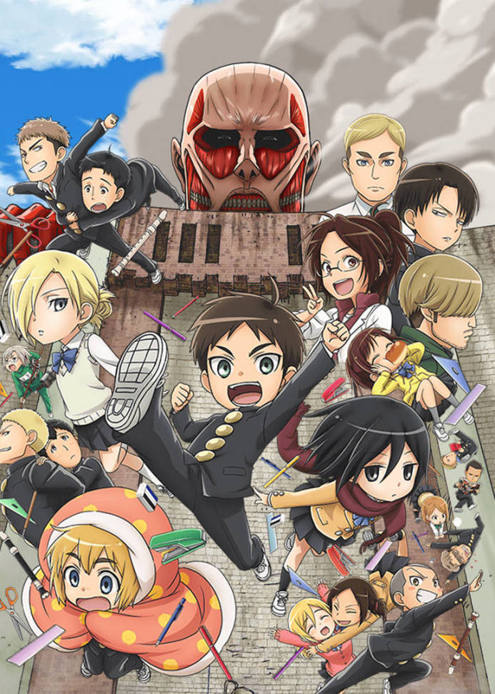 《进击的巨人》衍生作,104期训练兵团的轻松校园日常。修改了一部分原作设定,使本作中没有血腥只有欢乐。适合推荐给看过《进击的巨人》同时喜欢校园日常的观众。