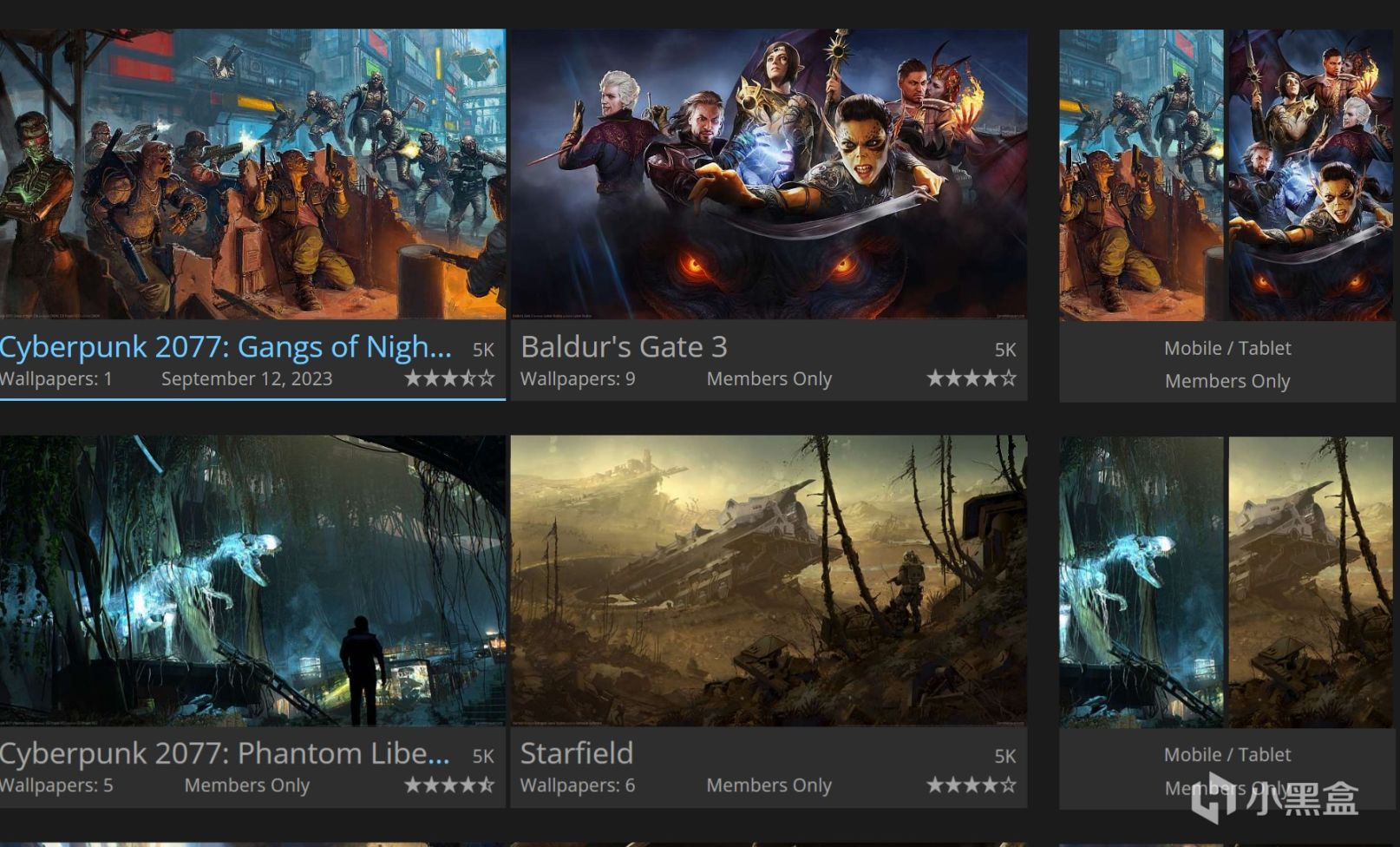 收集各類當下熱門遊戲大作的壁紙,比如現在熱門的就是《星空》,《Cyberpunk2077往日之影》,《博德之門3》等等