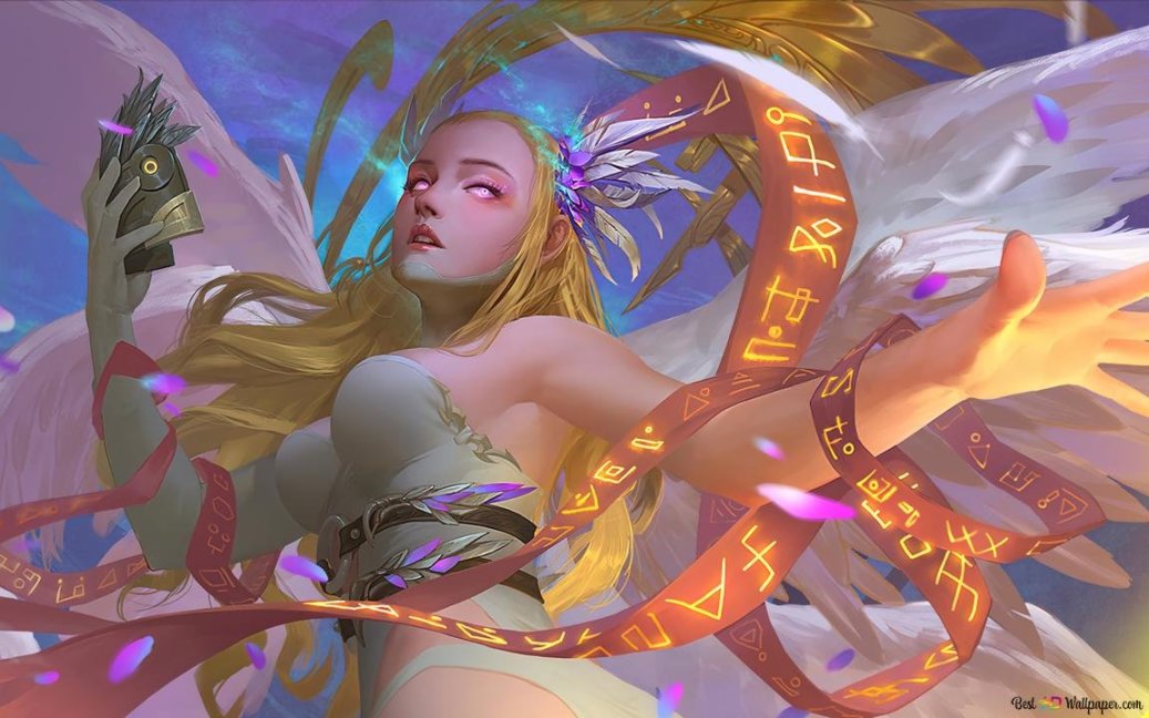 - 打敗吸血魔獸的關鍵,緊身體操服造型,官方描述爲擁有美麗女性身姿的天使型數碼寶貝,女神一般的存在。