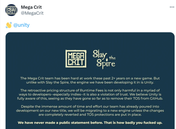 《杀戮尖塔》官方怒怼unity
