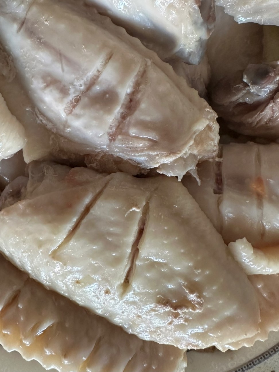 雞翅,每個劃兩刀,然後往鍋裏面加料酒,蔥姜焯水