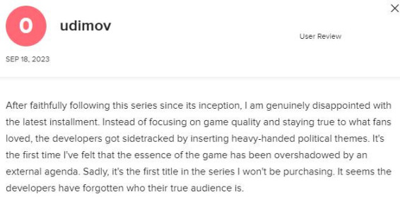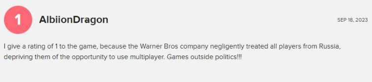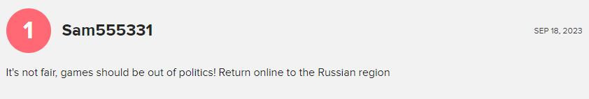 有趣的是,這款遊戲的用戶評分中,大多數差評來自俄羅斯和白俄羅斯的玩家。他們主要抱怨的問題是無法連接到遊戲服務器,同時對遊戲的故事戰役和某些角色設計表示不滿。