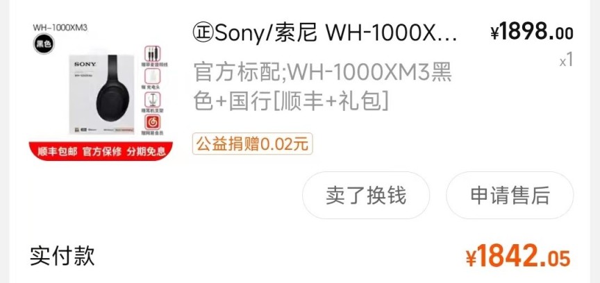 這可是整整1842大洋啊!當時心都在滴血,不過後來還是真香了。再次提醒,量力而爲,即便是這個價格四分之一的降噪耳機,也有不錯的降噪效果了。