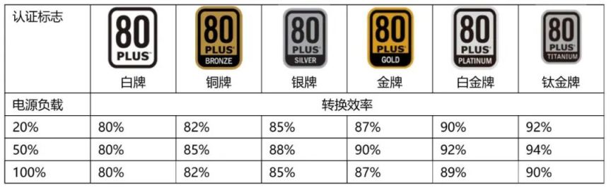 此外很多人唯“金牌论”,金牌呢只是电源“80PLUS认证”中一个较高的标准,代表这个电源转换效率更高、更省电