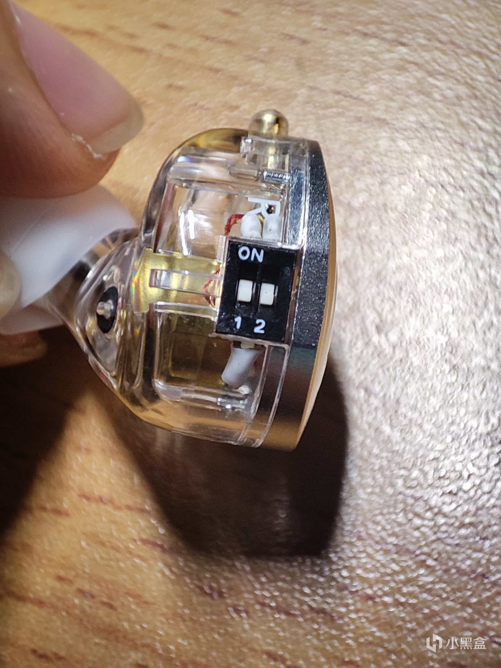 而耳机的调音开关就在耳机的边上,需要使用插针才能进行调节。