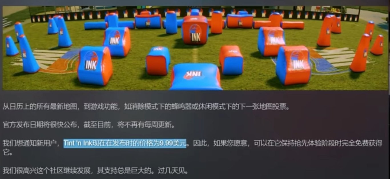 该游戏为限时喜加一游戏,现在领取即可永久入库。抢先体验即将结束,之后转为付费。付费后游戏价格为73元左右。该游戏为第一人称射击游戏,可以和好友一同联机游玩。游戏玩法就是真人CS的玩法。5V5淘汰对战模式,游戏武器为漆弹枪。一发漆弹即可淘汰敌人。虽然评价是褒贬不一,但我看了一下都是连接不上去的问题,使用加速器后即可解决联机问题。