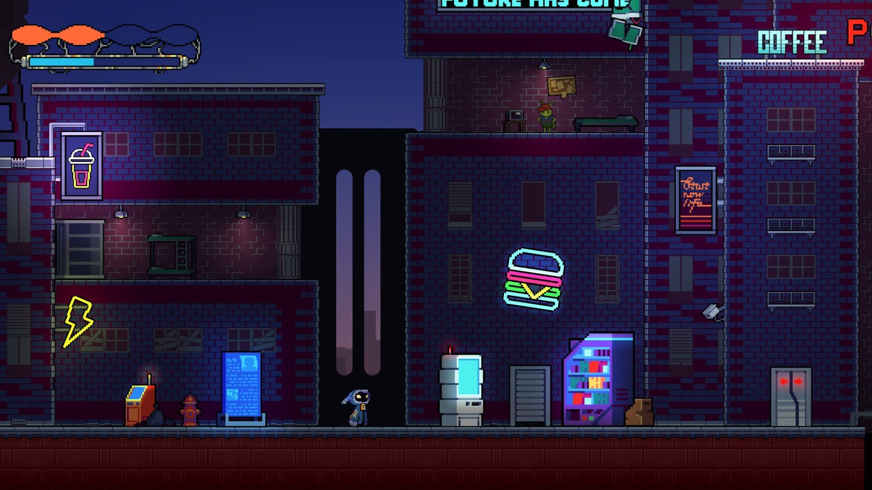 这是一款平面动作类冒险游戏,很适合来打发时间。游戏的画风有点赛博朋克。您将在这个2D的赛博朋克世界里探险。游戏的玩法非常简单,击打画面也非常炫酷。