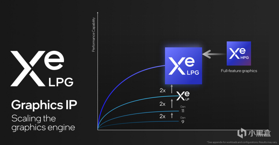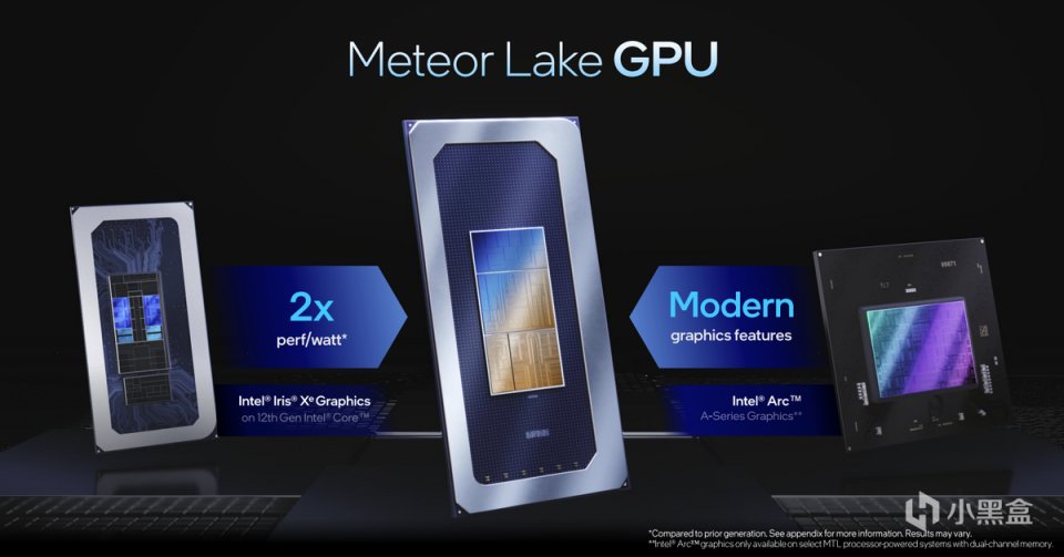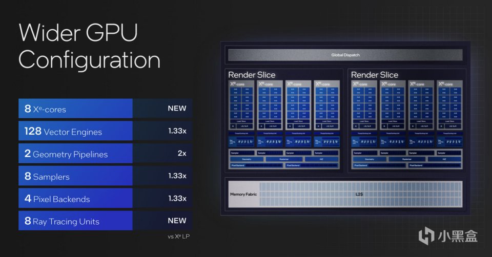 圖形Tile的Xe LPG Graphics在幾個性能關鍵點上都有2倍的性能提升,包括提升了圖形Tile的主頻,使用更低電壓,互聯緩存進行優化。Meteor Lake上的圖形Tile現在擁有8個GPU核心,有128個Vector Engines,可以提供相較之翻倍的幾何圖形渲染管線,以及更高的Pixel和Samplers能力,並增加了8個硬件光線追蹤單元。