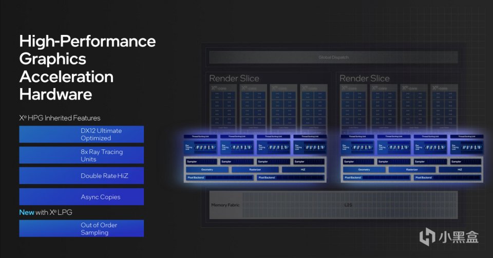 從特性上來看,Meteor Lake的Xe LPG Graphics具備了英特爾獨立GPU的一些特性,包括對DirectX 12 Ultimate的優化,光線追蹤性能加強,雙倍率HiZ,異步拷貝等獨立顯卡特性,並增加了亂序採樣功能,進一步增加準確率。