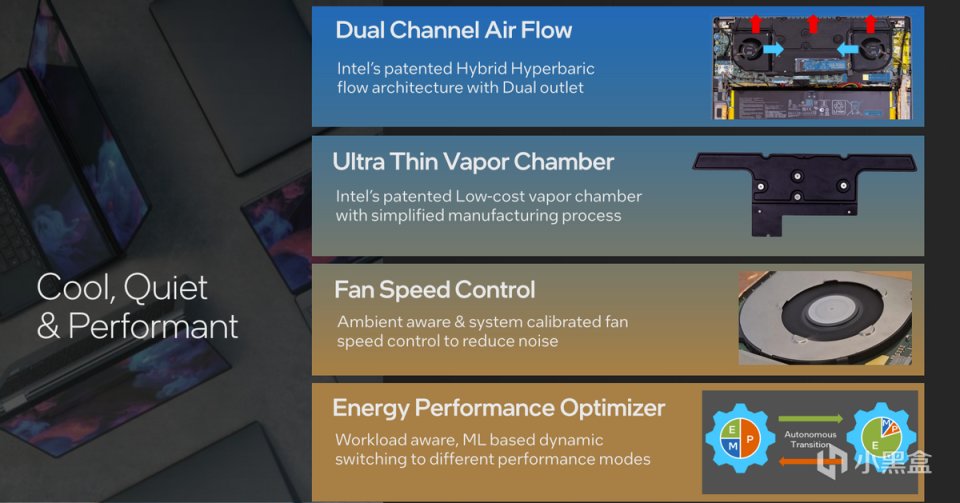爲了實現這個設計,英特爾在硬件和軟件上都做了相關的能耗優化,包括DLVRs,電壓控制,內部總線動態調節,針對不同工作負載釋放性能等等。