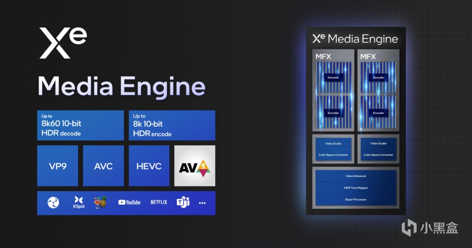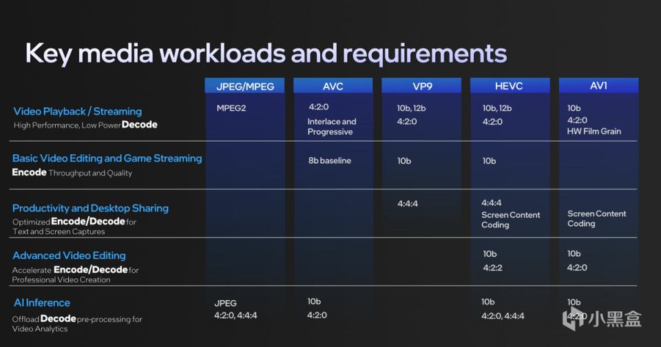 現在Meteor Lake最高能夠支持8K 60FPS 10bit HDR解碼和8K 30FPS 10bit HDR編碼,編碼格式包括VP9、AVC、HEVC和其他傳統格式,也包括最新的AV1編解碼。