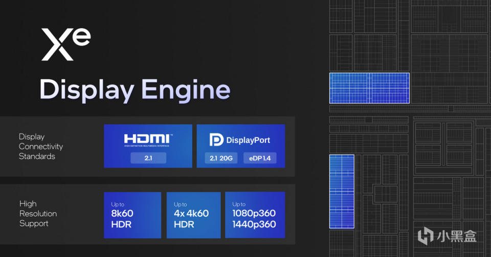 SOC Tile中Xe Display Engine則進一步對顯示功耗做了優化,並對顯示全路徑壓縮,以提供最好的輸出方案和功耗控制。就制式而言,Meteor Lake現在能夠支持HDMI 2.1和DisplayPort 2.1以及完成的eDisplayPort 1.4輸出,分辨率最高支持到8K 60FPS HDR,或者外接4個4K 60FPS HDR,再或者更高刷新率的1080p、1440p視頻輸出。
