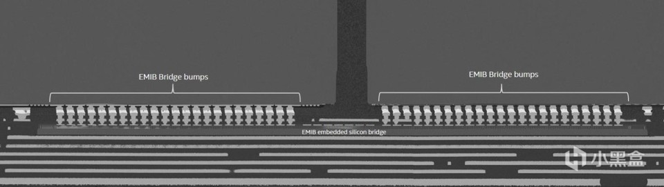 EMIB的2.5D封装技术其实很好理解,即两个Die之间需要通过一个基板进行互联,也就是通过第二层基板实现不同Die之间的连接。不同于常见的PCB电路板,负责基板的连接密度可以实现55微米的间距。