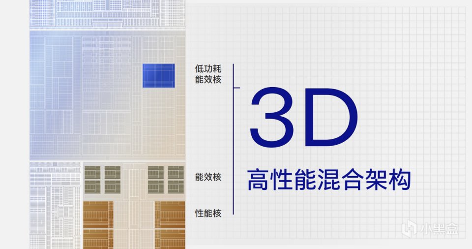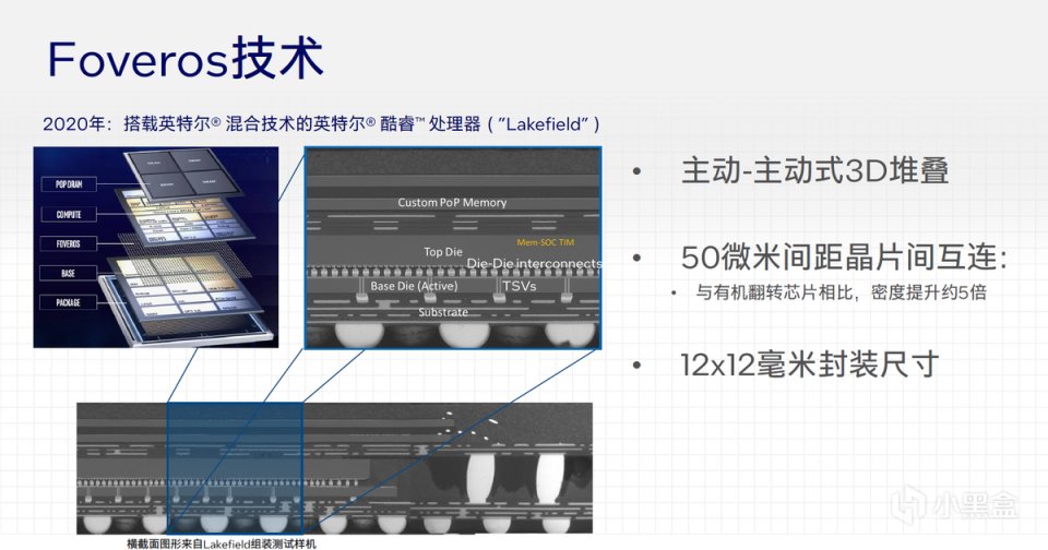 不仅如此,在2020年,英特尔首次在一款独立笔记本上实现了Foveros 3D封装技术,最终构建了具有里程碑意义的Lakefield移动处理器。Lakefield不仅实现了1个Ice Lake与4个Atom的混合架构,并且吧内存和处理器封装在了一起,混合架构的概念则自然延续至今,12代酷睿的P-Core与E-Core混合架构便是如此。