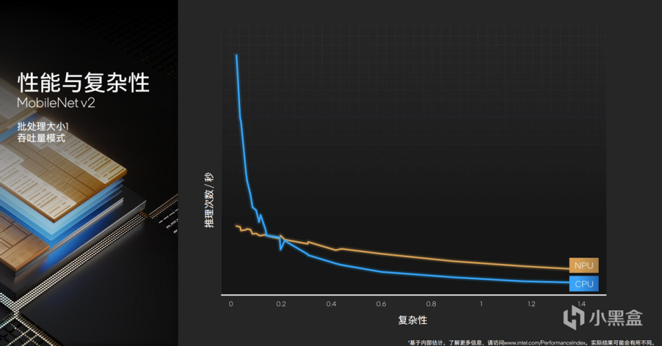 以MobileNet v2为例,在复杂度较低的应用场景中,可以看到CPU更为高效。而随着复杂度增高,NPU则更为擅长。