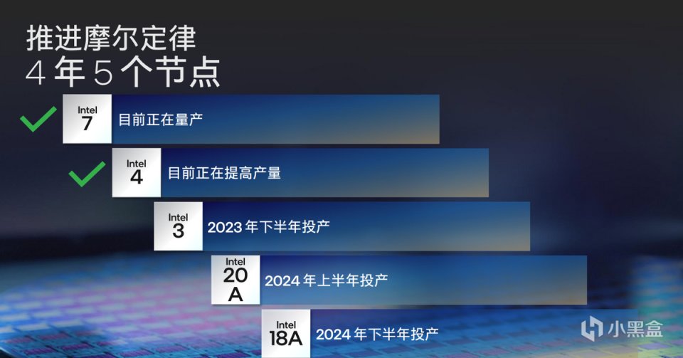 Meteor Lake性能与功能进步很大原因取决于Intel 4制程工艺能够支持其进入量产。按照英特尔的说法,Intel 4目前进度符合预期,能够很好的帮助英特尔进阶到接下来的Intel 3、Intel 20A和Intel 18A制程工艺中,属于重要的制程节点。