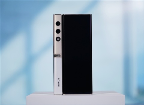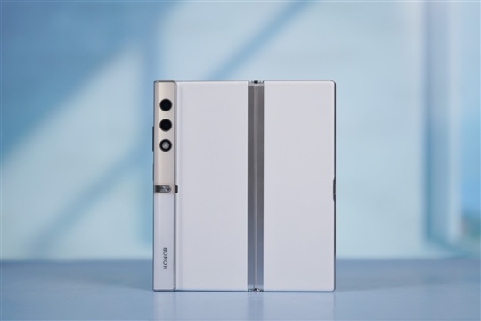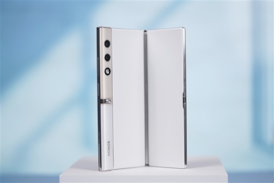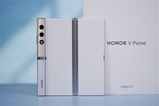 荣耀V Purse采用外折设计,将摄像头部件集成在边框长条中,机身后壳上采用类似珠宝和箱包上的纹理装饰,整体酷似一款时尚钱包。