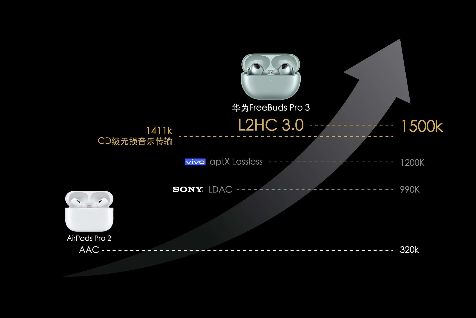 据介绍,华为 FreeBuds Pro 3是首款支持 L2HC 智能无损音频编解码标准的产品,全球首发 1.5Mbps 无损音质体验,支持 64K-1920Kbps、96kHz / 24bit 音频。