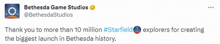 现在B社发推文宣布,《星空》目前在全球主机和PC平台上的玩家数量已突破1000万,成为B社有史以来发行规模最大的游戏。这款游戏还可以通过Game Pass获得,这无疑让玩家数量更多。