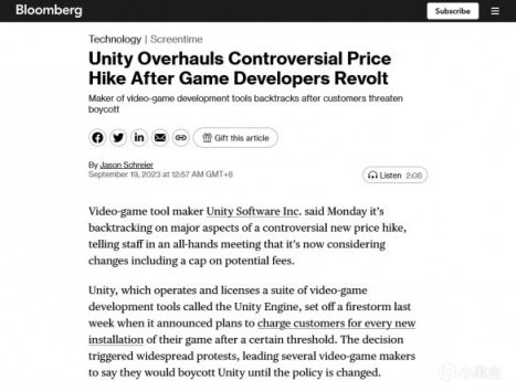 根据彭博社的最新报道来看,Unity暂时的新计划是对那些收入超过100万美元的游戏收取4%的费用,但低于该金额的游戏是否会被收费?收费标准是怎样的?目前还没有一个明确的消息。