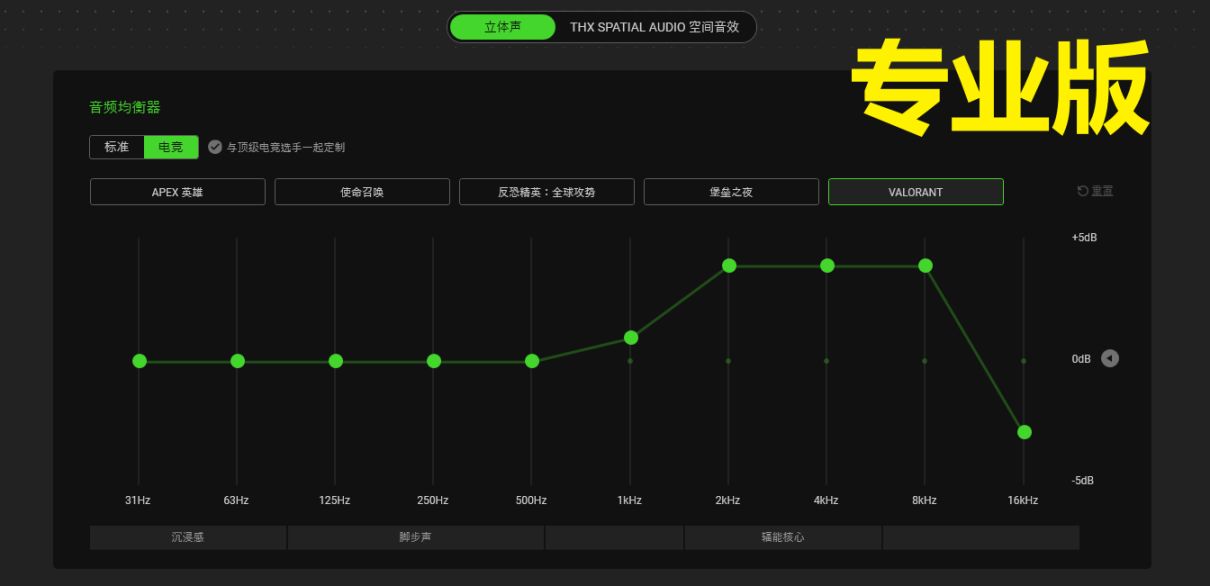 音效是一个极速版看似降级的地方。极速版比专业版少了和职业选手联合研发的特调EQ。