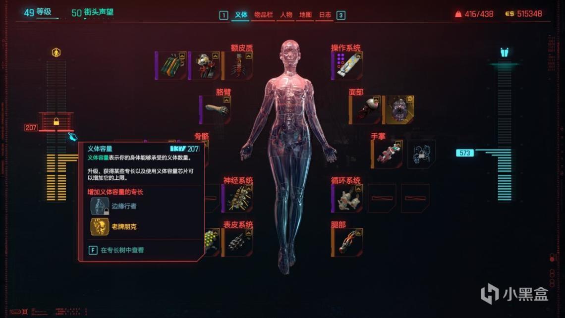 所以这次的免费更新,游戏中还特意增加了一个义体容量上限,这些义体会因为等级和特质的差异拥有不同的义体值,而当义体值达到上限,玩家就无法在身上增添更多的义体,需要通过提升等级来增加上限,或者解锁专长“边缘行者”来超出义体容量的上限。