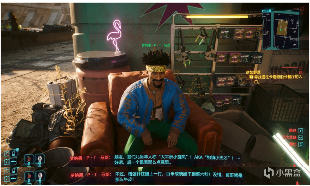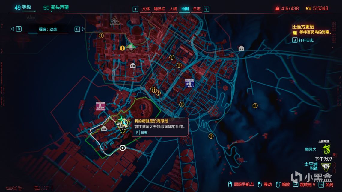 不过虽然玩法内容充实,但整个狗镇的地图面积在我看来还是偏小了一些。相比于整个夜之城的大小,作为一个独立的城市,狗镇也只是如同夜之城其中一个地区那样一般大小,这对于像我一样热爱在夜之城飙车兜风的玩家来说,可能会感到有些不够逛的。