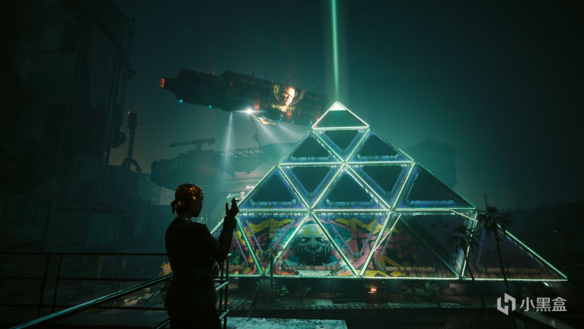 当然,即便狗镇并不是什么适合久住的地方,但对于玩家来说,这是一个充满着未知的全新地区。在探索狗镇荒废的街道和遗址过程中,我也发现了不少有意思的场景和建筑,像是委托人汉兹先生所在的金字塔型“心事重重夜总会”,提供狗镇市民没事干瞎晃悠的“伊甸广场”,甚至还有清道夫的老巢、满是赛博精神病的“已知领域”。