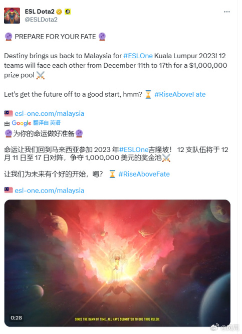 ESLONE官方發推,將在 12 月 11 日至 17 日舉辦ESLONE吉隆坡站的比賽,總獎金100萬美元。Valve最近剛剛宣佈取消了DPC聯賽機制,第三方舉辦的比賽可以申請TI13的直邀積分,也就是說本次ESLONE吉隆坡站的比賽很有可能在100萬美金的獎金之外,還有部分TI13的直邀積分,這樣的獎勵對各大強隊有極大的吸引力,小編在這裏看好未來會有更多的第三方DOTA2賽事舉辦,非常期待~