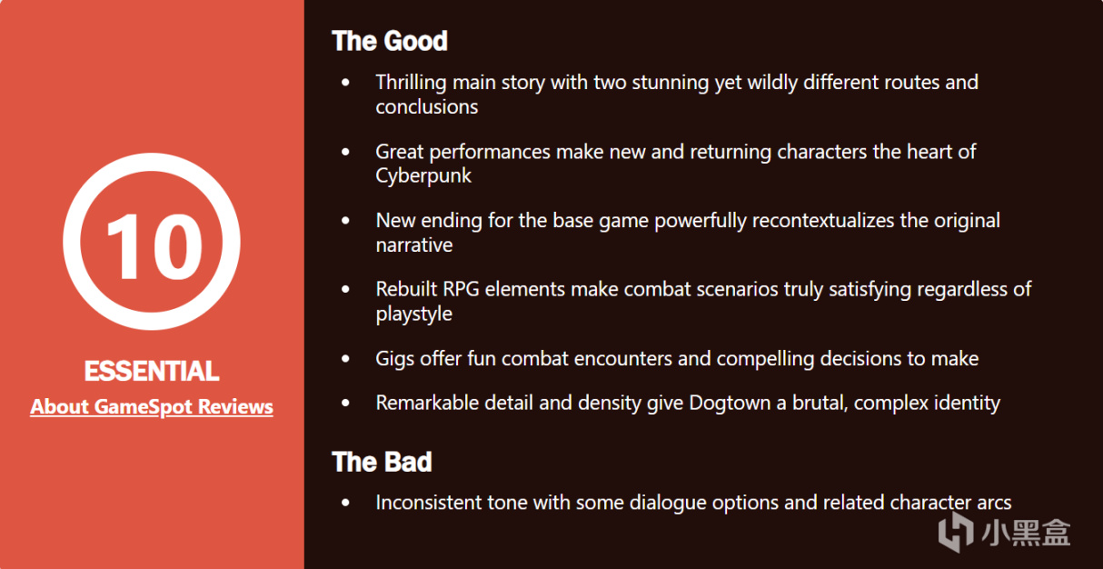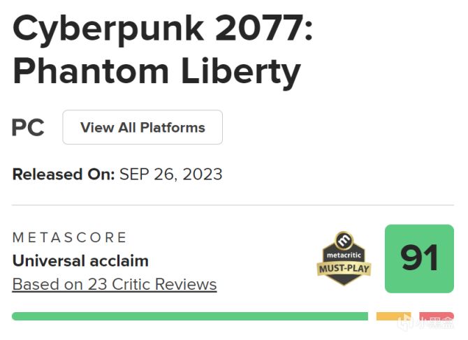 《賽博朋克2077:往日之影》媒體評分已解禁,目前已有多家媒體進行打分,其中Metacritic打出了91分,IGN打出了9分,GameSpot打出了10分,Game Informer打出了8.5分,PC Gamer打出了87分。