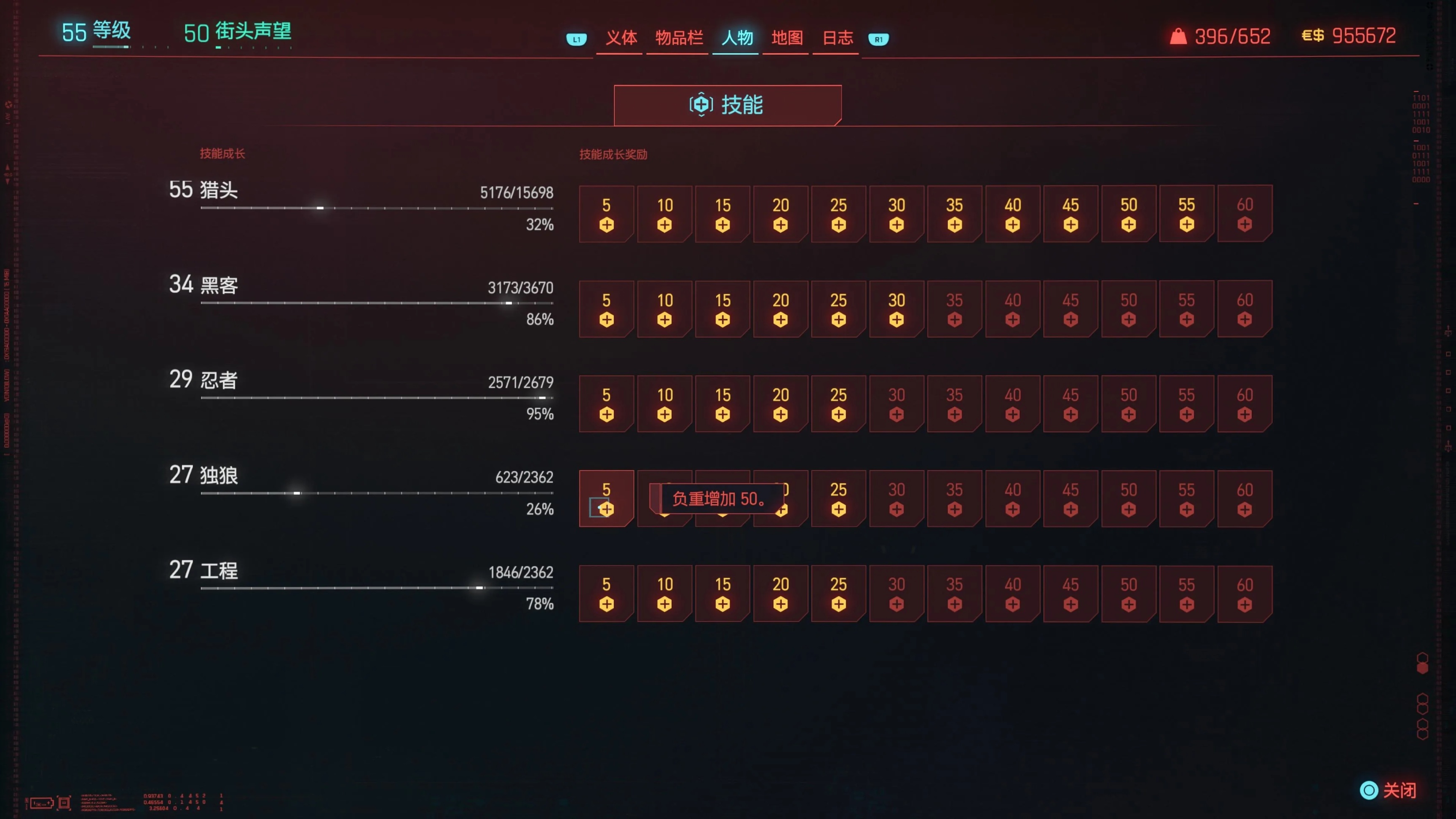 另外,技能成长等级与人物属性挂钩,也被浓缩成五条(猎头、黑客、忍者、独狼和工程),不再是前一个版本 12 条线并存的混乱局面,让玩家有针对性且快速提升技能成长等级。譬如删掉的负重技能被放置在独狼中通过升级直接获得的设计,也避免玩家浪费点数主动提升负重的多余选择。