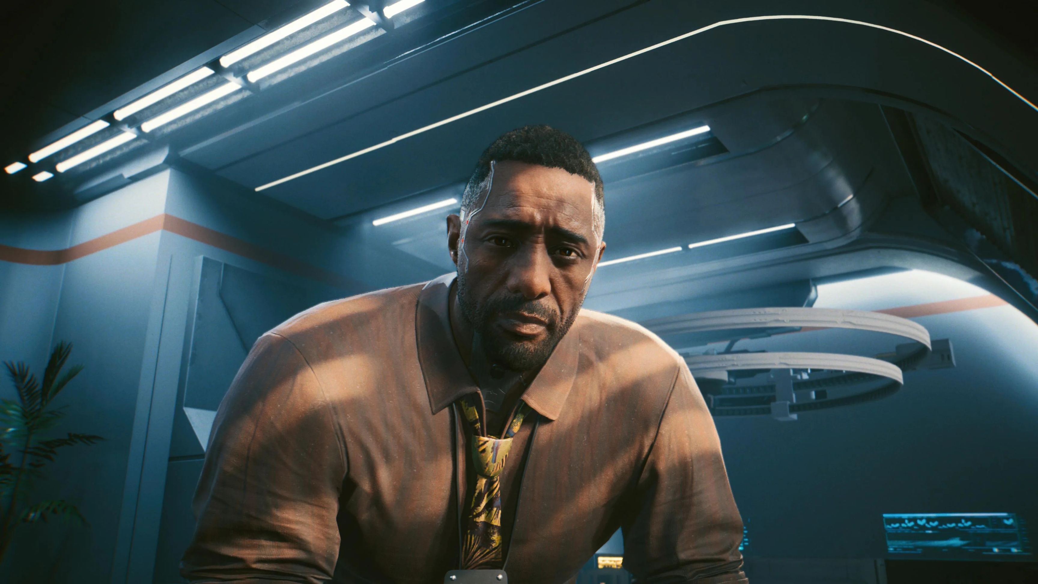 相比于游戏中样貌变得更像亚当·德赖弗而不是基努·里维斯的银手,所罗门·李德真的是完全还原了伊德里斯·艾尔巴的那张最帅黑人脸,连眉宇间的忧愁神情都被拿捏住,可以说是当今最为传神的,由演员扮演的游戏角色。艾尔巴展现了专业演员的素养,每个动作、对白,甚至是面部的微表情,都将一个经验丰富的老派特工的一举一动完美诠释,某个结局中他和 V 的互动更是动人。