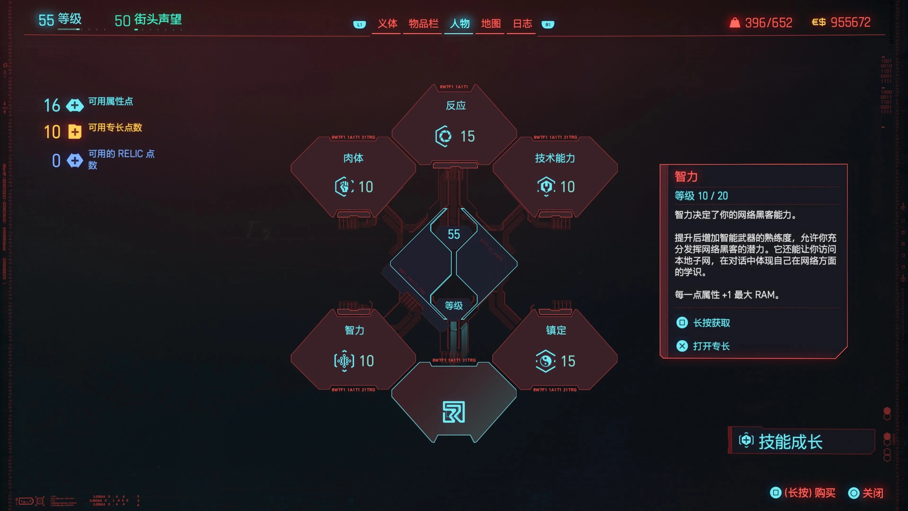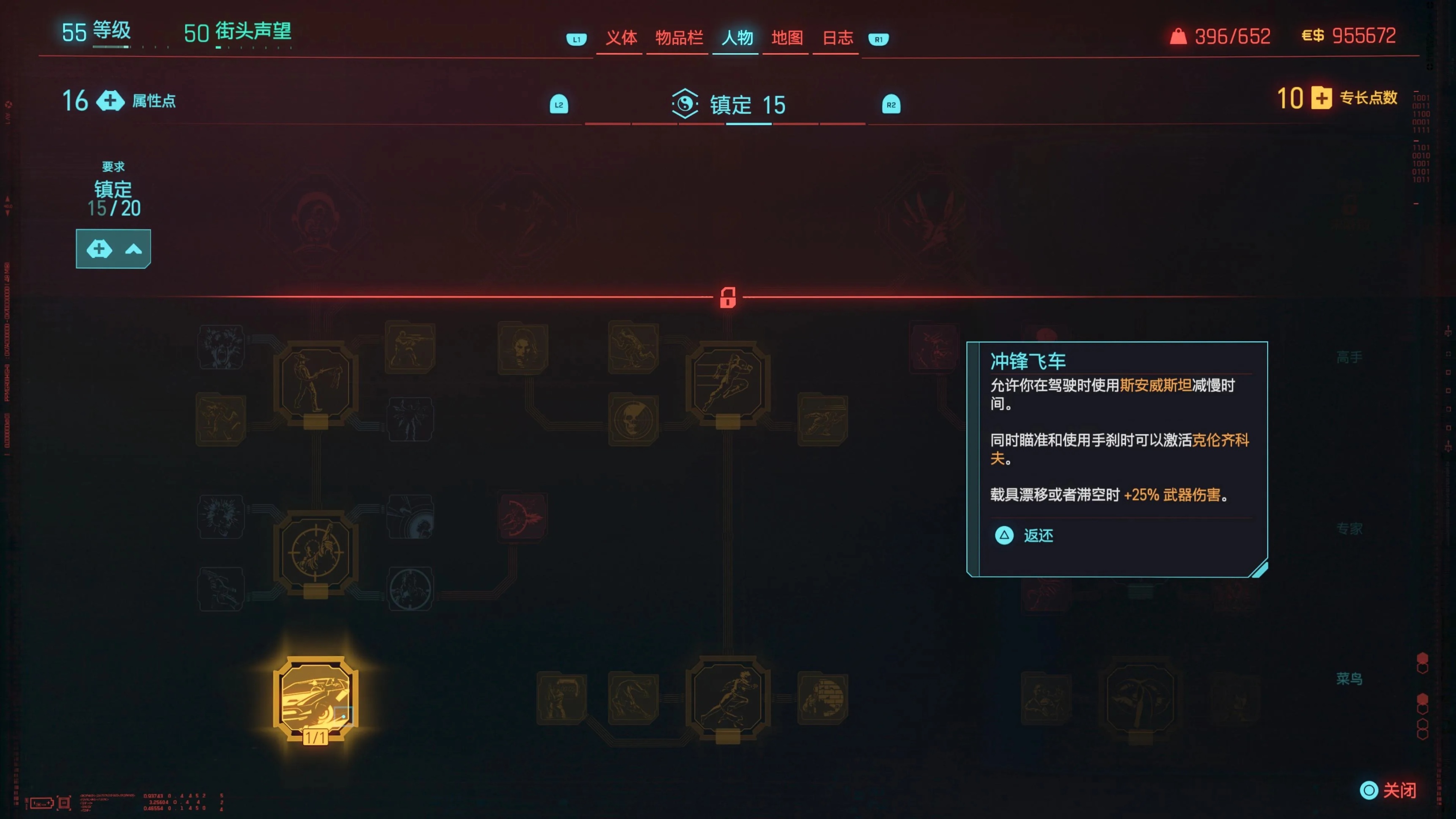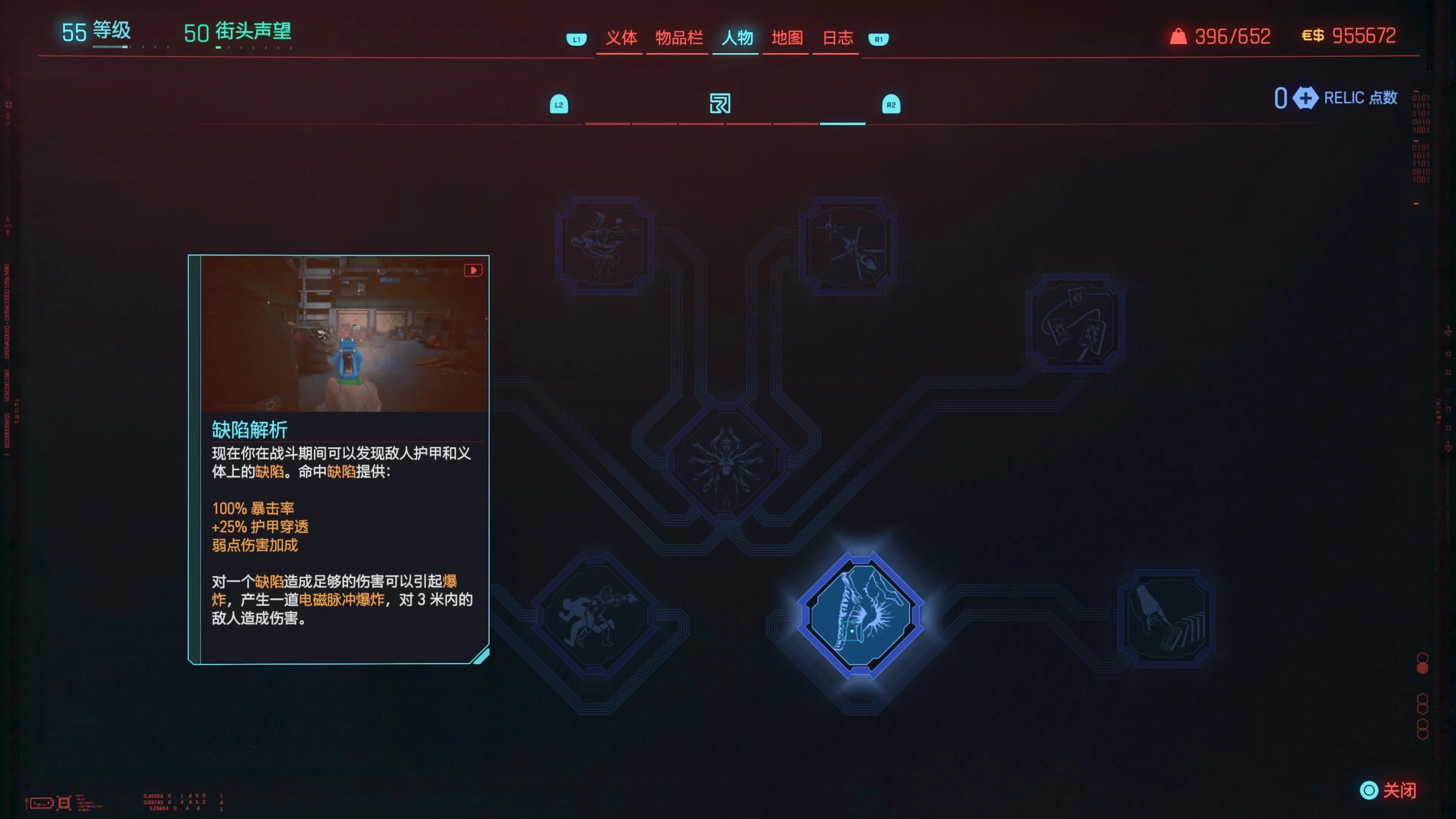 不仅仅是技能树,2.0 的大变化还有义体系统:追加义体容量和护甲两套数值,分别表示 V 身体能够承受的义体上限和抵抗伤害能力,两个数值主要通过升级和获取高级专长技能来提升。义体还可以在义体医生处进行升级,不和角色等级挂钩,只与义体容量有关。除了义体,武器的数值展现也变得直观,不再是笼统的 DPS 高低,要结合五维,属性对应的专长技能选择多方面来选择拿手武器,和原本还是有区别的。