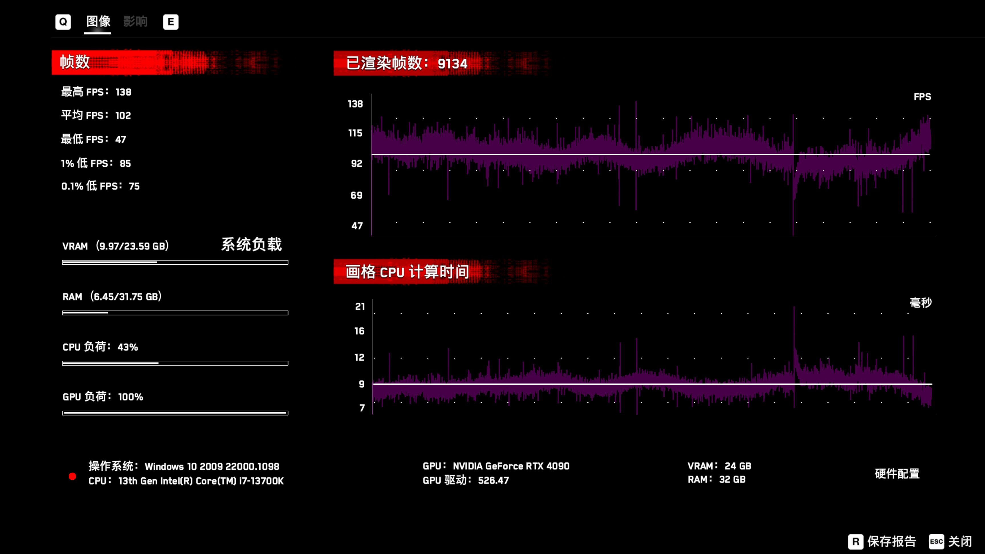 「Watch Dogs: Legion」游戏内benchmark测试 4K 画质 开启光追超级+DLSS 功能后平均帧数102 帧,最低帧数 47帧;
