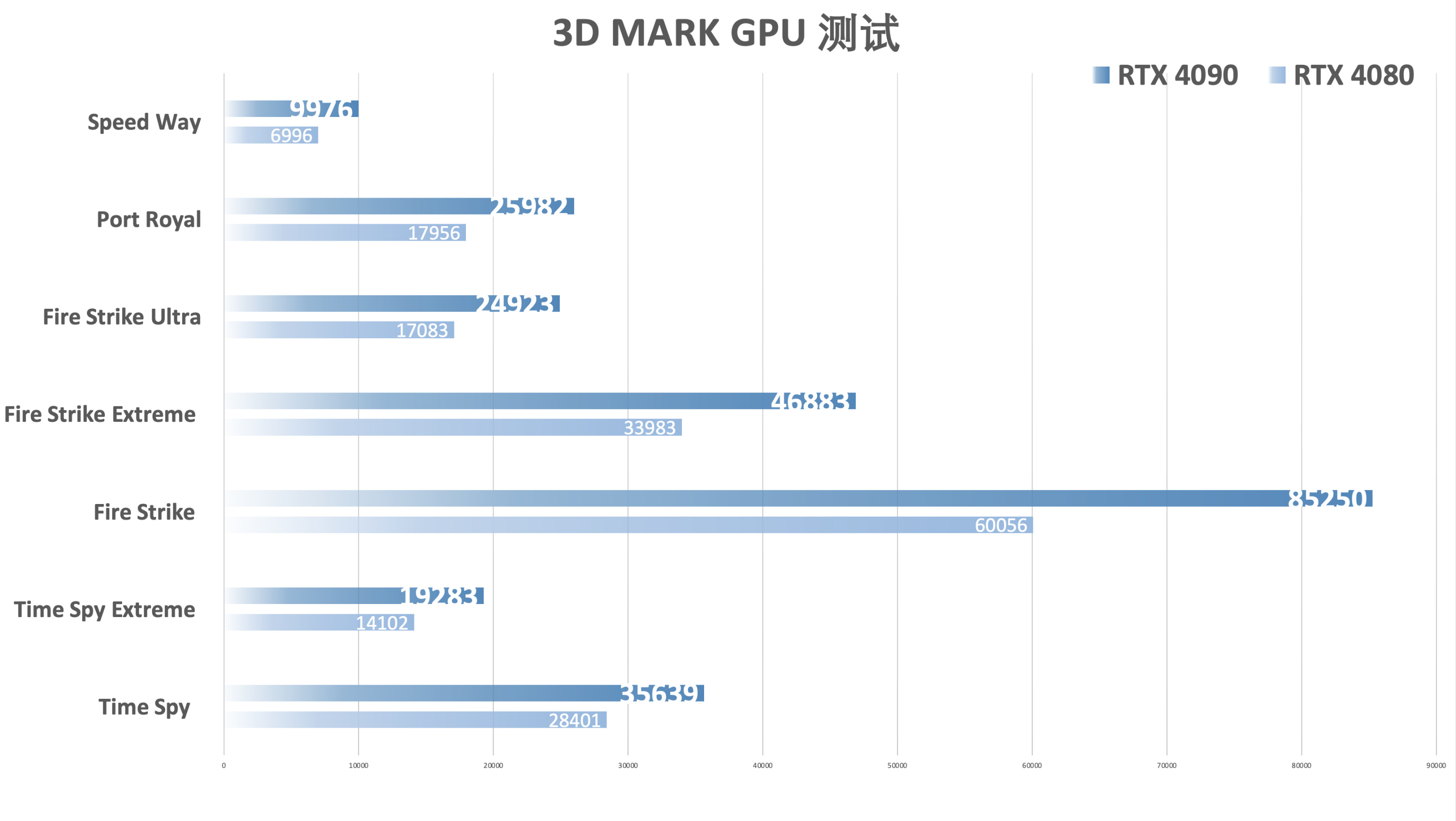 3D Mark GPU 测试成绩如图,一起对比了RTX 4080 显卡数据,大家可以参考一下。