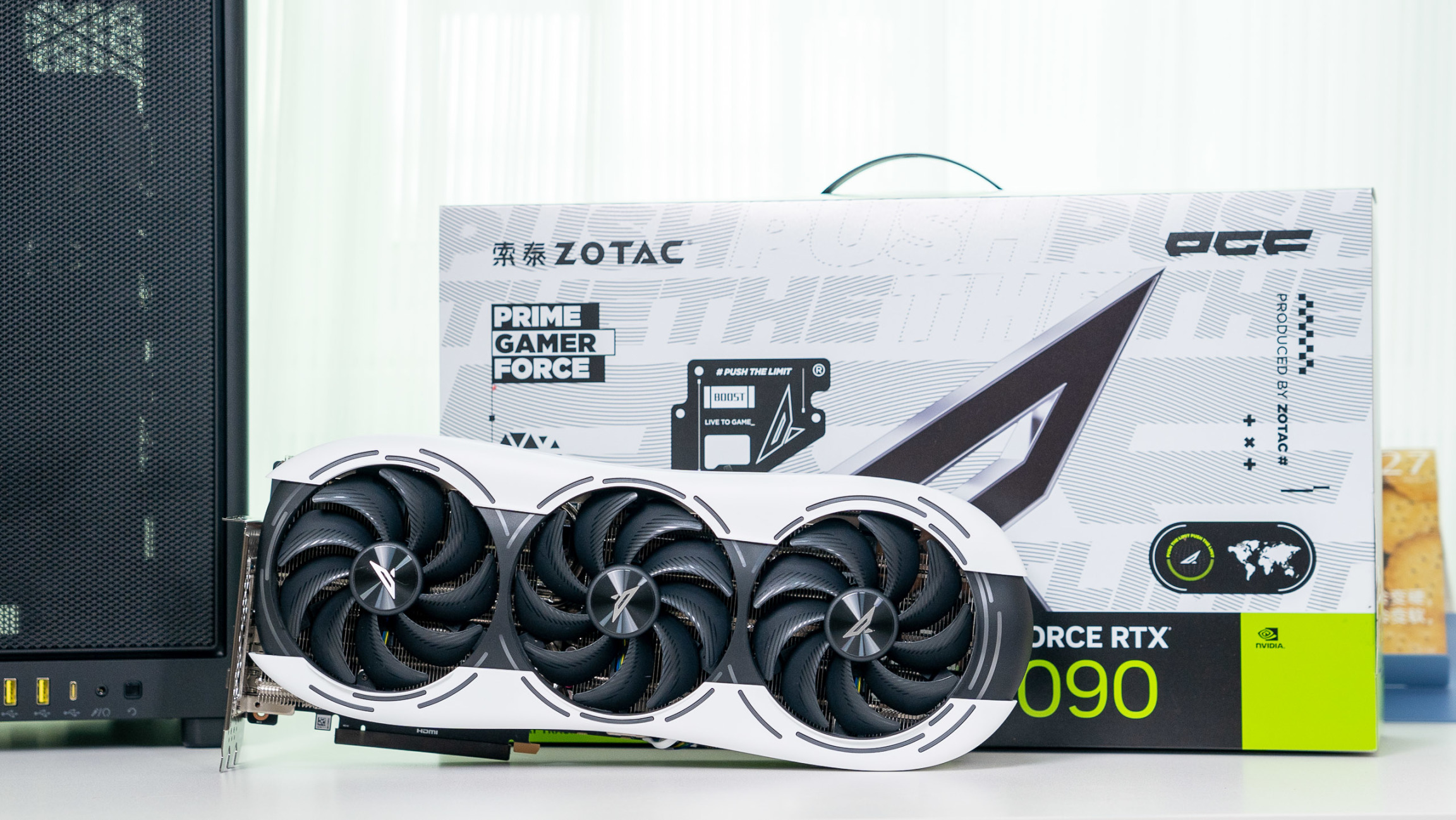 想不到在这个时间点,索泰又更新了一张新的旗舰卡皇:GeForce RTX 4090 24GB PGF OC。设计上与之前旗舰定位的AMP EXTREME 可以说完全是另外的风格,整体虽然采用白色调,但是在风扇位置又采用了黑白对比色的设计,在风扇一周的曲线灯带设计感更强。索泰之前的AMP EXTREME AIRO 月白就给我留下了深刻的印象。但是这次拿到 PGF OC 后就完全是另一感觉,所以还是想单独拿出来做一篇内容开箱分享给大家。
