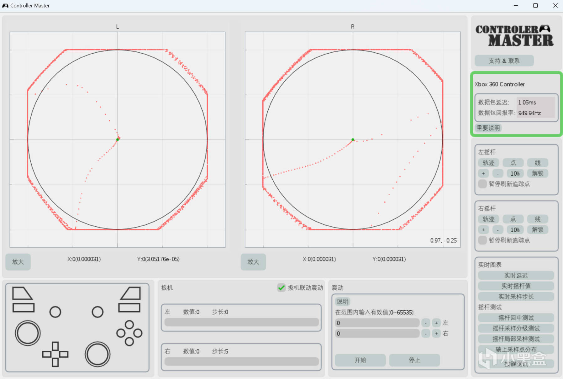 左摇杆回中测试,右摇杆测出来一直是0.000031,所以只放了左摇杆的测试结果