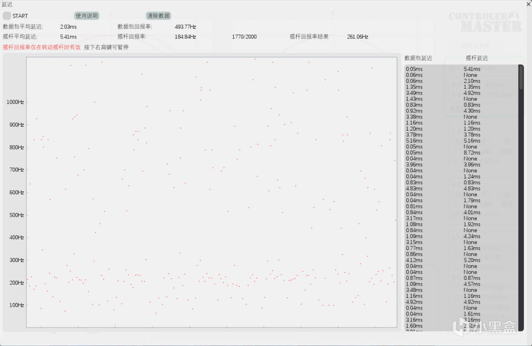 有线这个我完全可以理解,因为之前测试的手柄很多堆料的手柄都达到了这个等级,但是2.4g这个真的很少,大部分的手柄厂家不会给专门的送一个2.4g接收器,这时候就需要玩家自己购买,同时2.4g500hz的回报率也就意味着在无线芯片上需要多花一笔钱,之前测试的手柄通常在100hz的回报率左右,你可以理解为比其他不送接收器的手柄快了五倍左右。