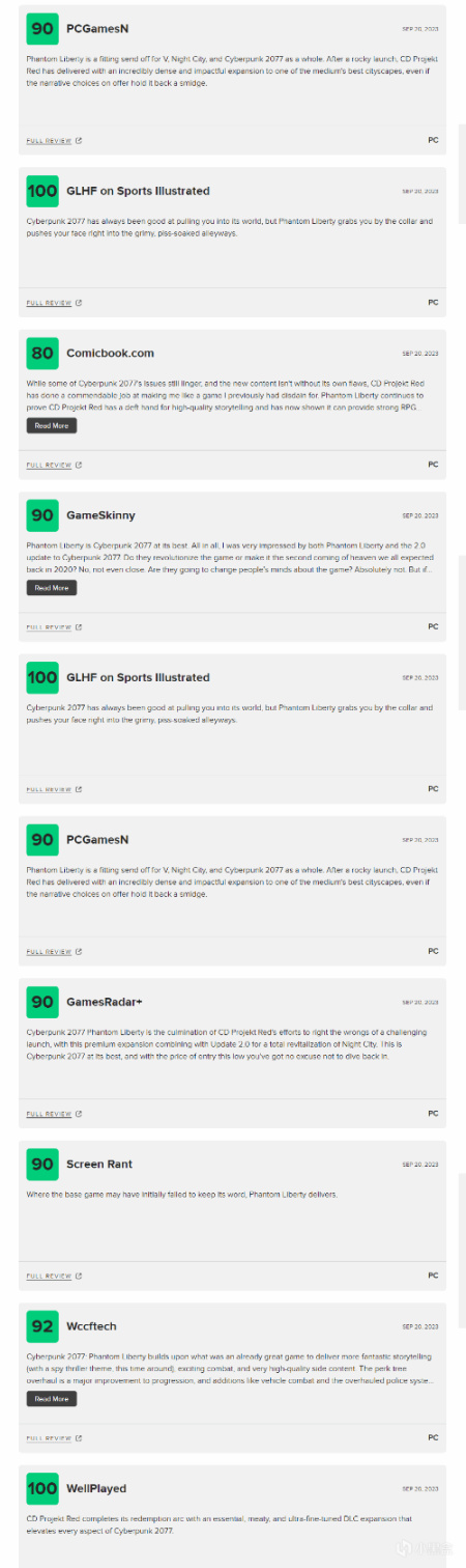 《赛博朋克2077》最新资料片《往日之影》即将于9月26日发售,M站评分于昨晚解禁,目前游戏的评分为89分。以下是部分媒体的评分: