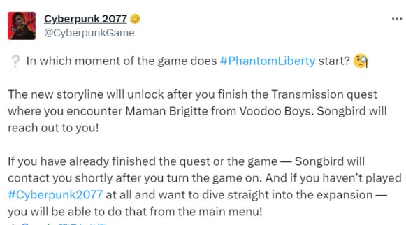 刚刚cyberpunk2077回复了新资料片《往日之影》的任务会在什么时候开始