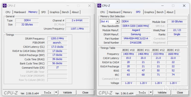 阿斯加特内存的颗粒为三星,虽然频率为3200MHz,但在这台小主机上内存频率只能上到2400MHz。