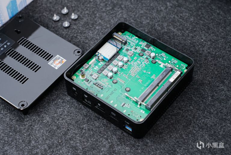 至本R5-3550H迷你主机的拆机难度基本上为0,只需要取消底部的脚垫,然后拆除内部的螺丝即可打开后盖。