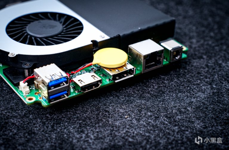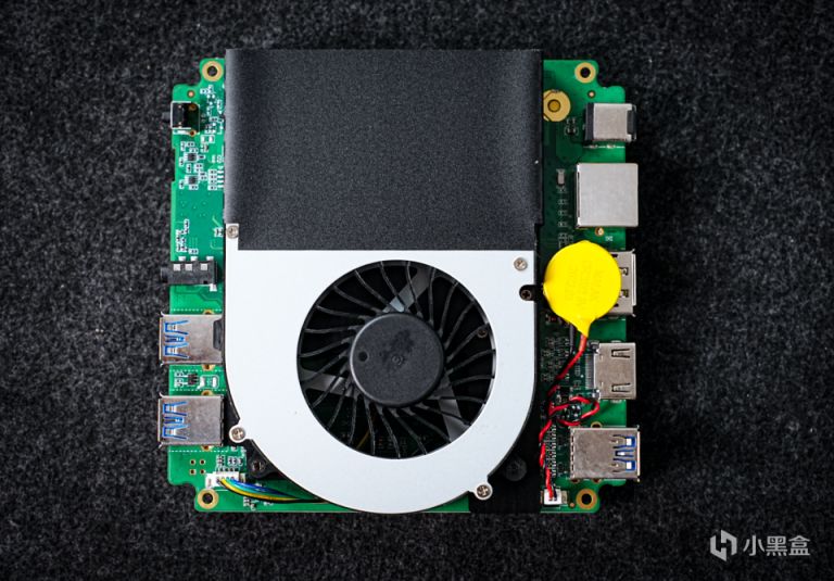 至本R5-3550H迷你主机主板的另一侧,搭载了一个涡轮散热风扇