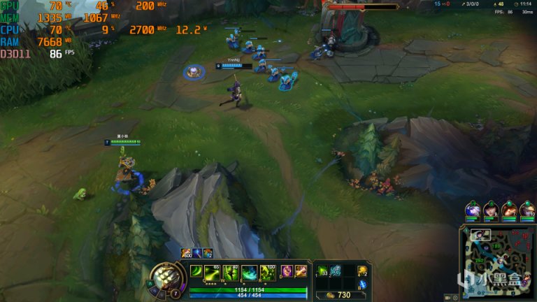 游戏方面我就实测了一个LOL,在4K分辨率,中等画质的情况下,游戏帧数在40~60FPS之间浮动。