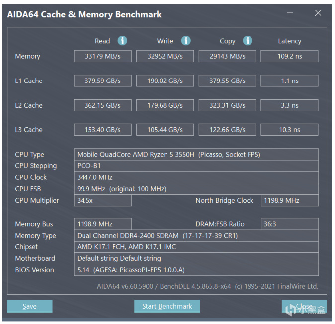 这样下来读取速度仅有33179MB/s,写入速度为32952MB/s,复制速度为29143MB/s,延迟也达到了109.2ns。