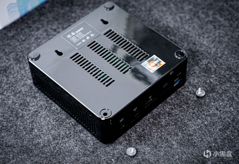 该mini主机的开孔在底部和机身两侧。底部开孔是为了硬盘散热,两侧开孔则是进出风口,等看了下面的拆解就会该mini主机的布局一目了然。