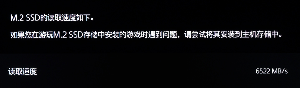 ▲重新开启PS5,经过格式化后,即可看到固态硬盘的读取速度,aigo P7000Z 2TB版本的读取速度高达6522MB/s,这是一个很优秀的成绩了,要知道PS5的文件存储格式与PC不同,很多高端的SSD在PS5中的测试读取速度也只能达到约6000MB/s左右,因此我们可以得出结论,aigo P7000Z适合做为PS5的扩容盘使用。