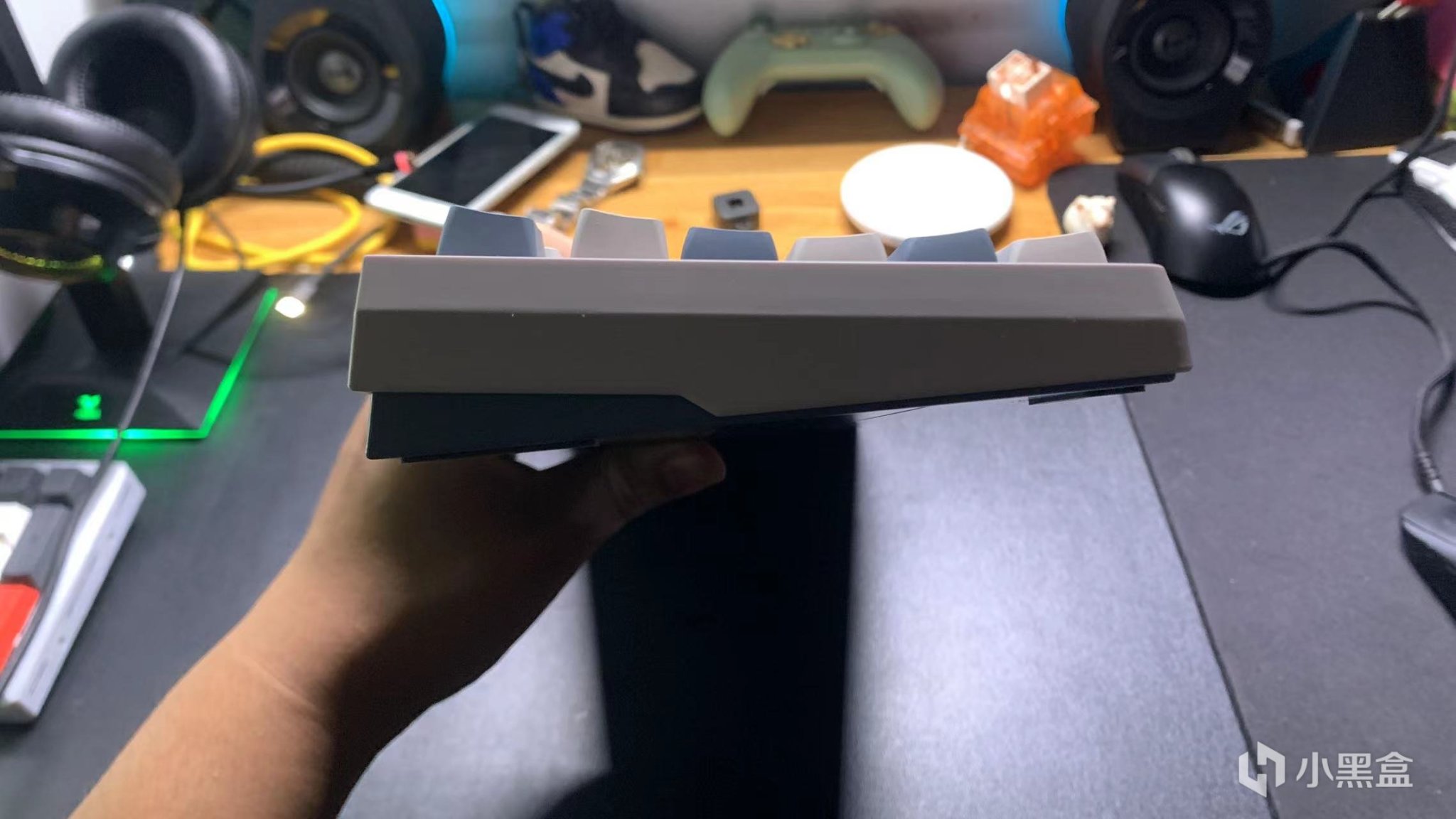 键盘的侧边可以看见这把键盘有一定的工业设计,但是关于倒角的设计,我有点蒙,就是键盘下方倒角设计的很圆润但是上方设计的就略显的有点拉手了,这个我也不大懂是咋个一会事。