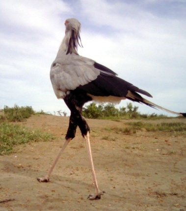 蛇鹫的腿在所有猛禽中最长,小腿和脚表面长有很厚的角质鳞片,使其行走于灌木丛或捕蛇时脚部不易受到伤害。
